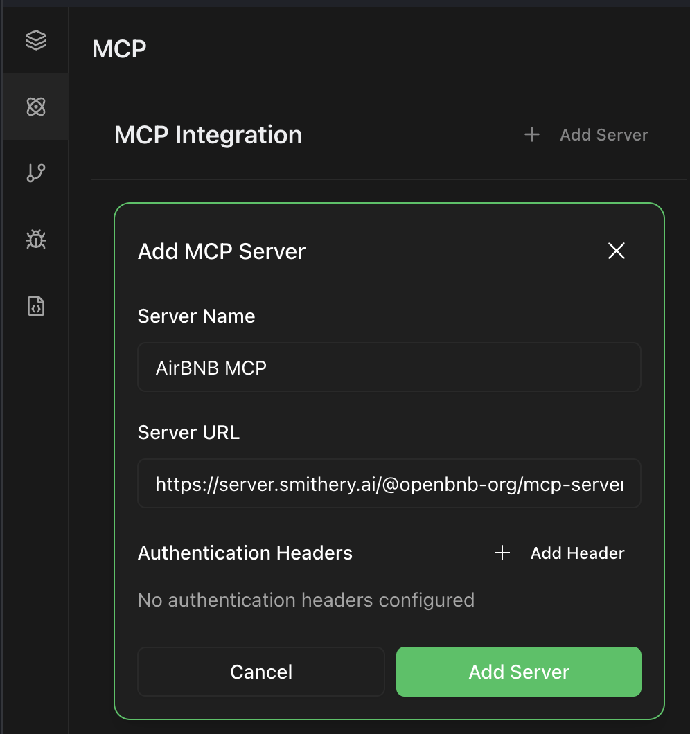 PersistentAI automatically wraps any MCP server into native workflow nodes by simply providing the server URL, eliminating the need for custom integration code or manual API mapping. The system dynamically discovers available tools, prompts, and resources from connected MCP servers and generates corresponding node interfaces with full type safety and schema validation. This auto-discovery mechanism continuously syncs with server capabilities, automatically updating node configurations when servers add new tools or modify existing ones, ensuring workflows remain current without manual intervention.