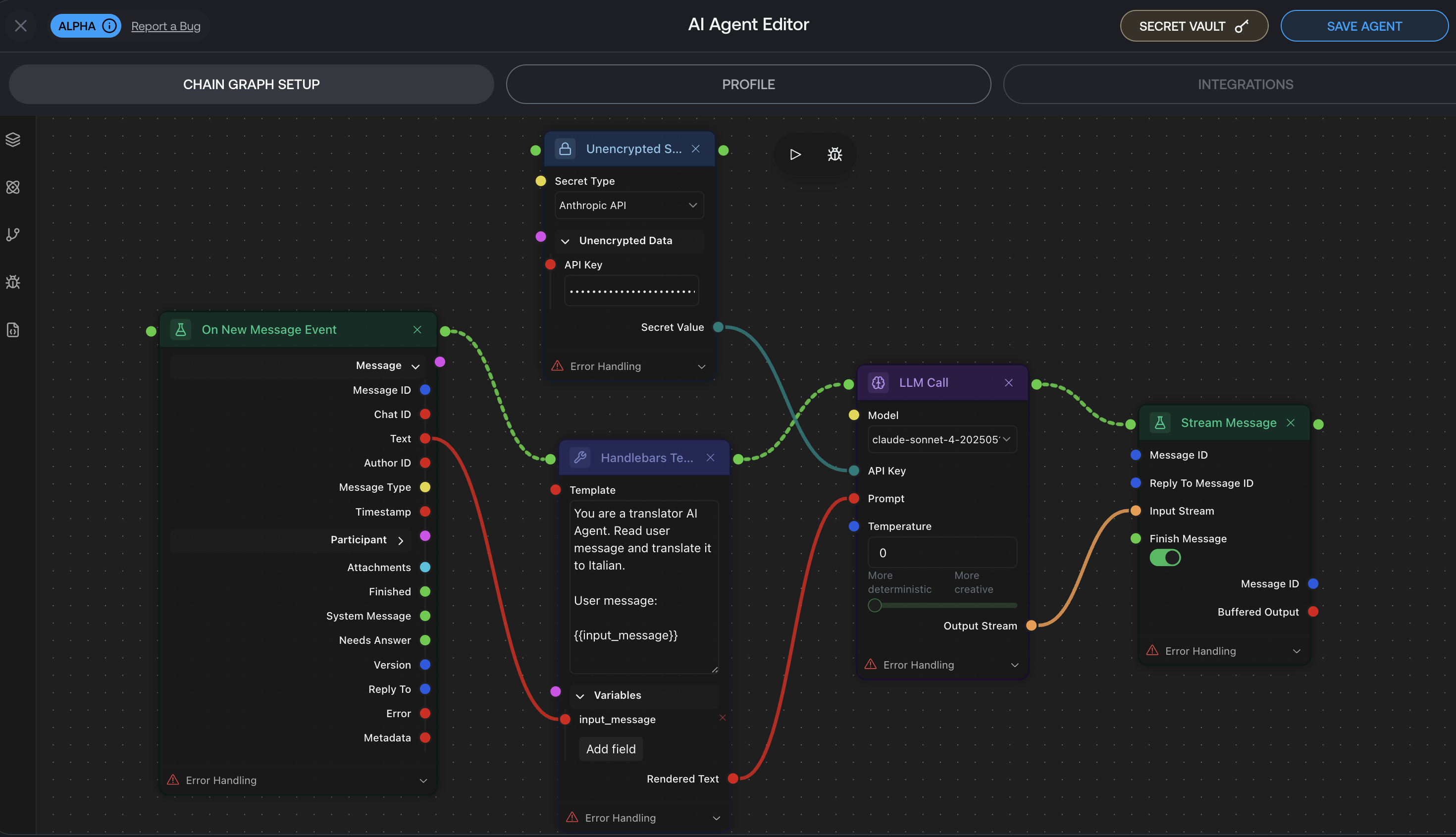 1. Your agent will be assigned and id and the flow will be saved so you can return to it at any time.