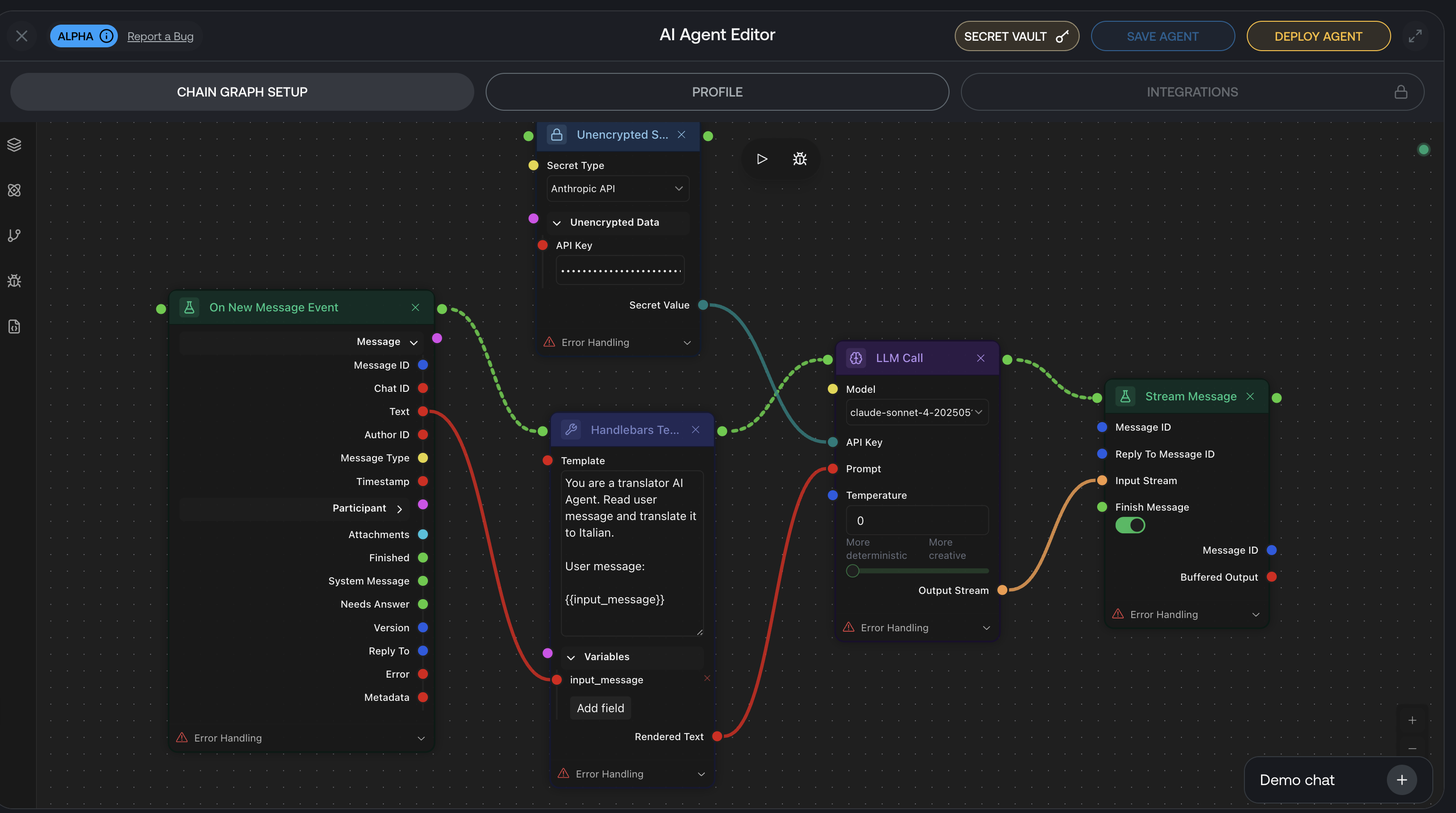Use the demo chat to instantly test your flow.